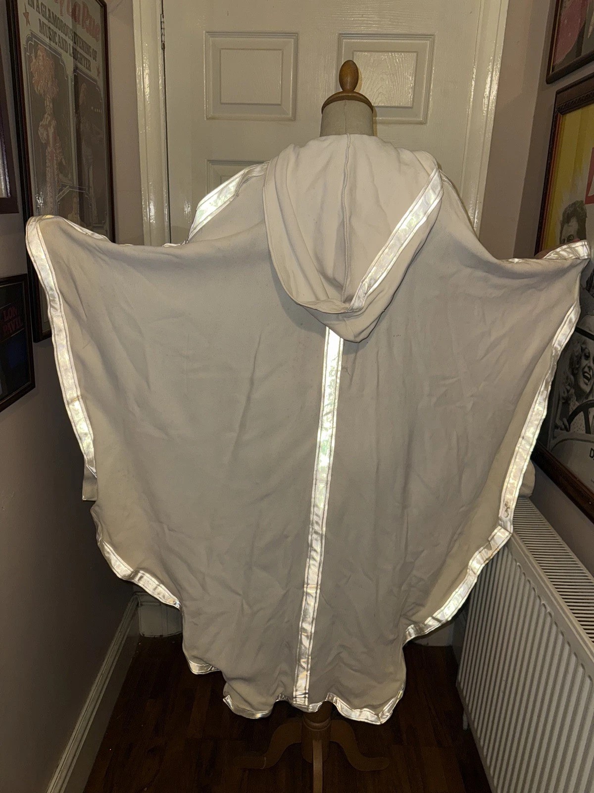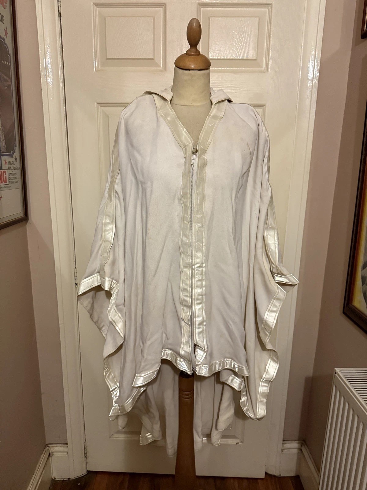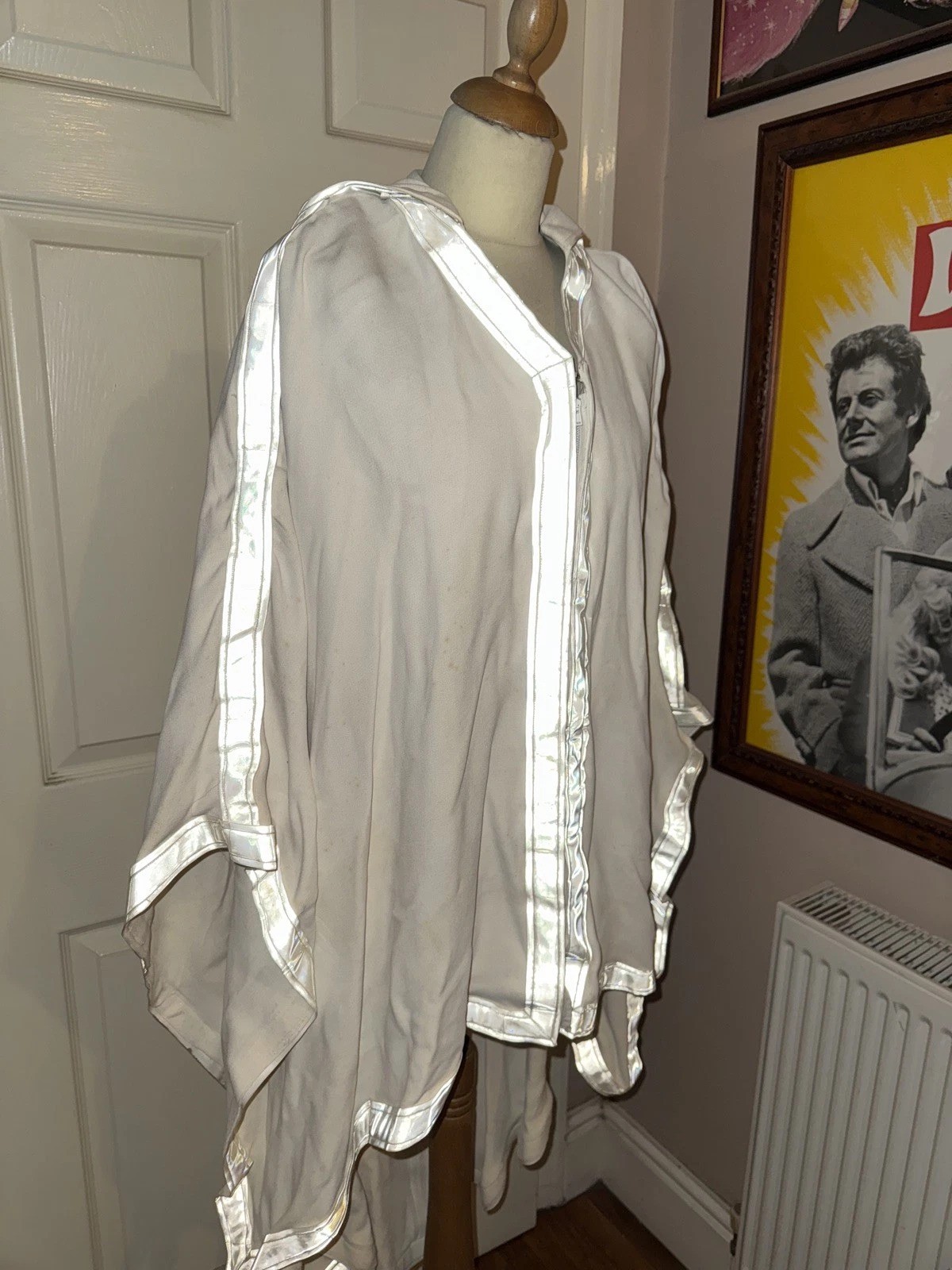This is an original Krypton costume that was made for the destruction of Krypton scene at the beginning of the 1978 film Superman. The costume is made from a heavyweight fabric almost in a kaftan style with very wide full sleeves & a hood to the back & reflective panelling to the front & all edgings. The costume fastens to the front with a zip & carries the original Bermans & Nathans label with production details.
