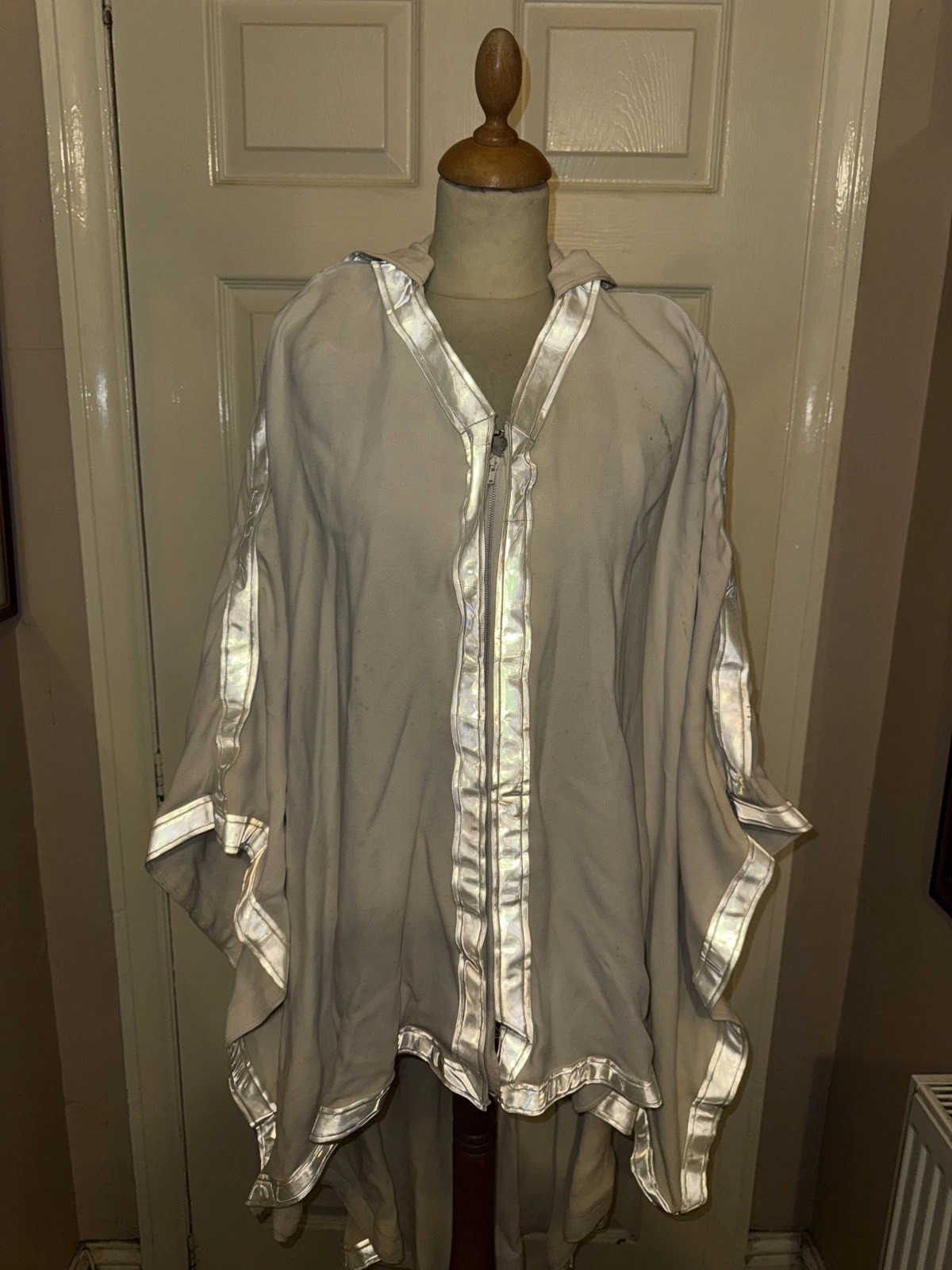 Fair condition, there doesn’t seem to be any cracking to the reflective panelling but there is some discolouration & some marks to the costume. The costume would look nice on display as the label can clearly be seen & would frame nicely.