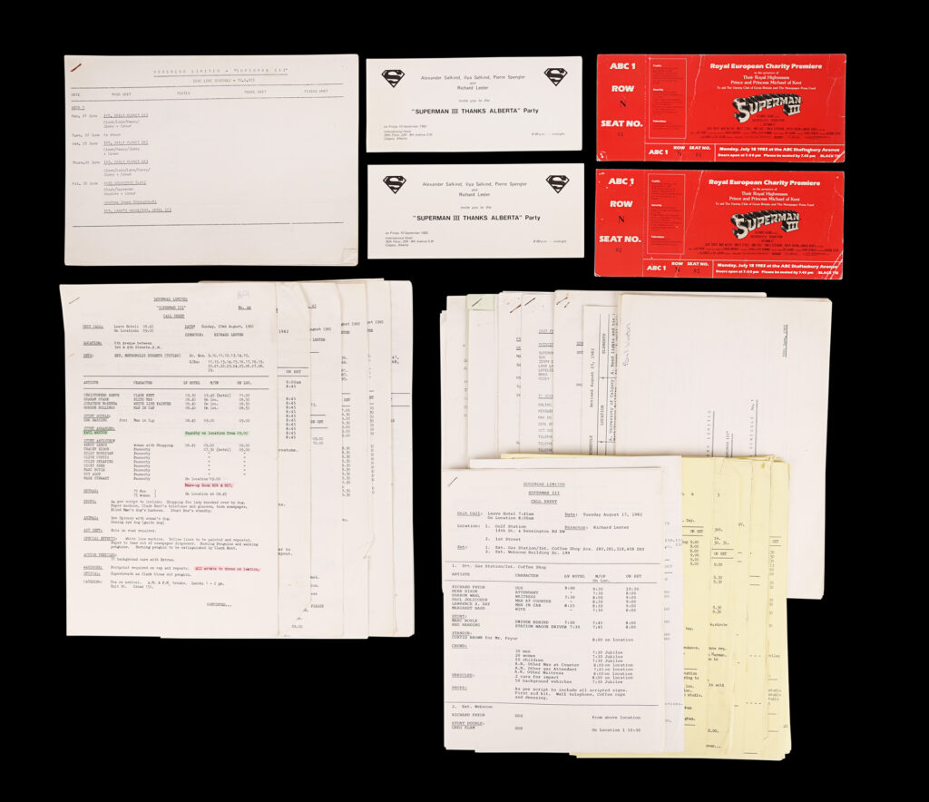 Superman III – Call Sheets, Production Paperwork, and Premiere and Party Invitations